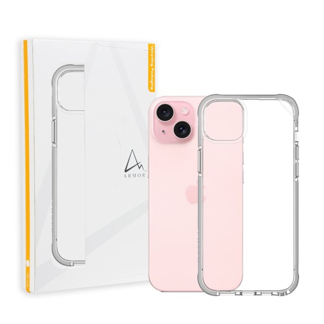 Signature PRO Case for iPhone 15 Plus / 15, Crystal Clear with Grey Tape