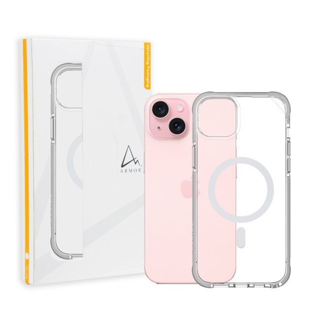 Signature PRO MagSafe Case for iPhone 15 Plus / 15, Crystal Clear with Grey Tape