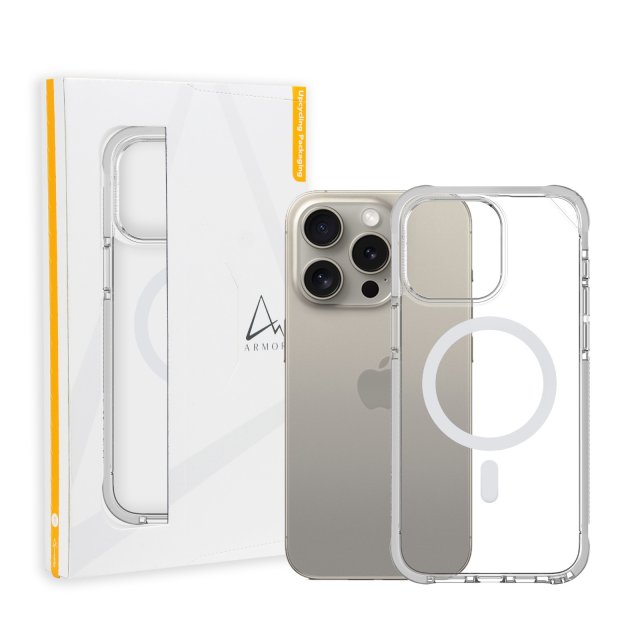 Signature PRO MagSafe Case for iPhone 15 Pro / 15 Pro Max, Crystal Clear with Grey Tape