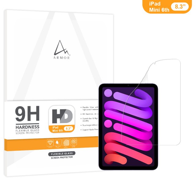 Flexible Glass Screen Protector for iPad mini 8.3" (A17 Pro/6th Gen.), 9H with HD