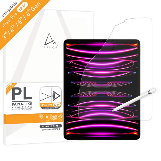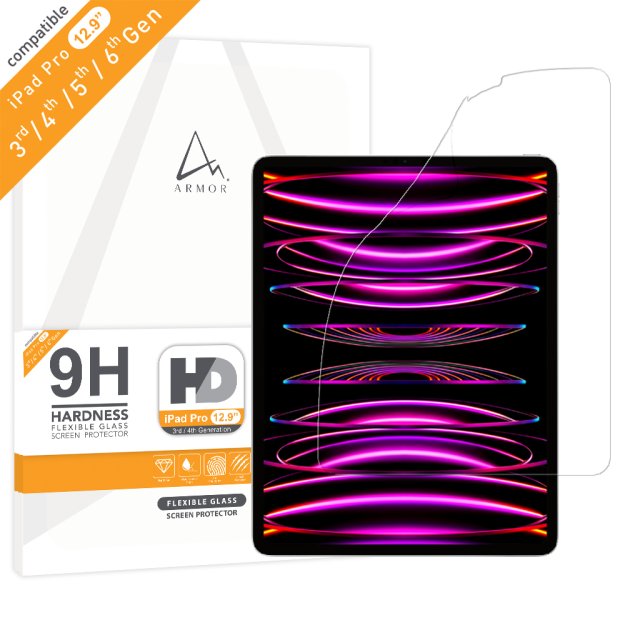 Flexible Glass Screen Protector for iPad Pro 12.9 (3rd / 4th / 5th / 6th Gen.), 9H with HD