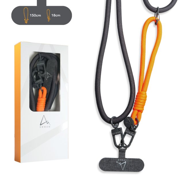 Multifunctional 2-in-1 adjustable mobile phone lanyard, Charcoal Grey with Orange