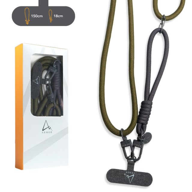 Multifunctional 2-in-1 adjustable mobile phone lanyard, Dark Olive Green with Charcoal Grey
