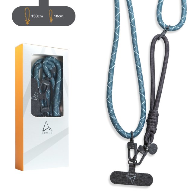 Multifunctional 2-in-1 adjustable mobile phone lanyard, River Blue with Charcoal Grey
