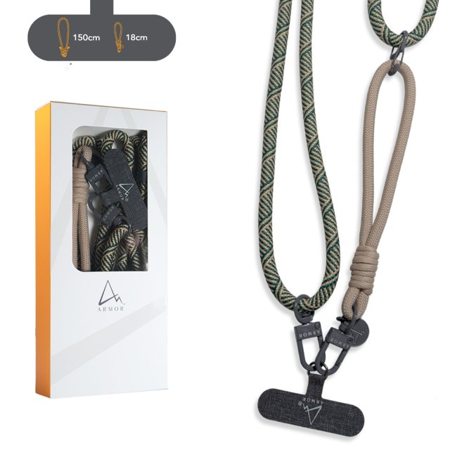 Multifunctional 2-in-1 adjustable mobile phone lanyard, Palm Green with Cocoa Cream