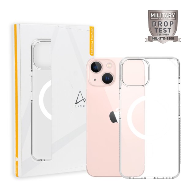 Signature MagSafe Case for iPhone 13 / 13 Mini, Crystal Clear with Grey Tape