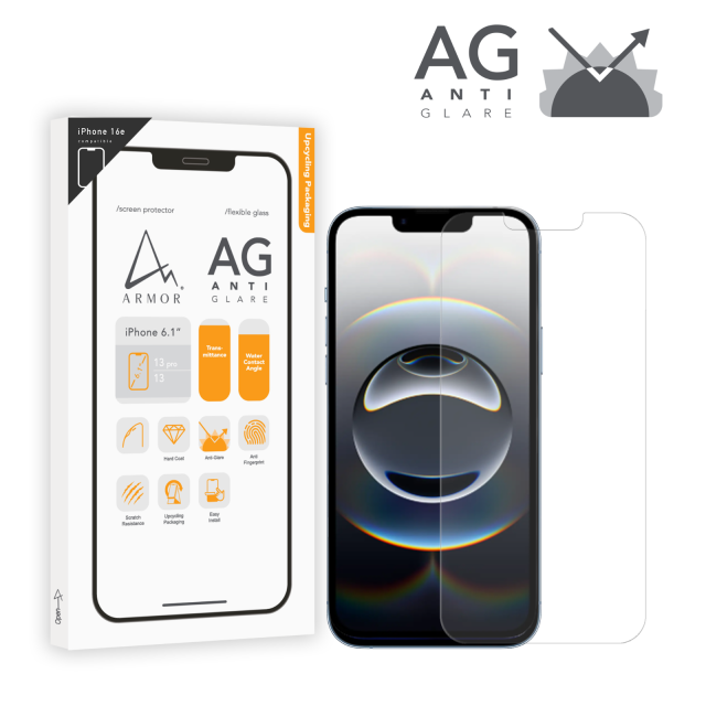 Flexible Glass Screen Protector for iPhone 16e / 13 Pro / 13, Privacy Guard with 9H