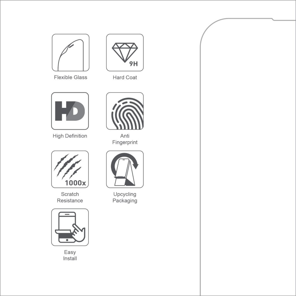 Being a core material for ARMOR screen protectors, flexible glass combines the benefits of plastic and glass, to provide a comfortable feel, strong protection, and safety on your screen and yourself.